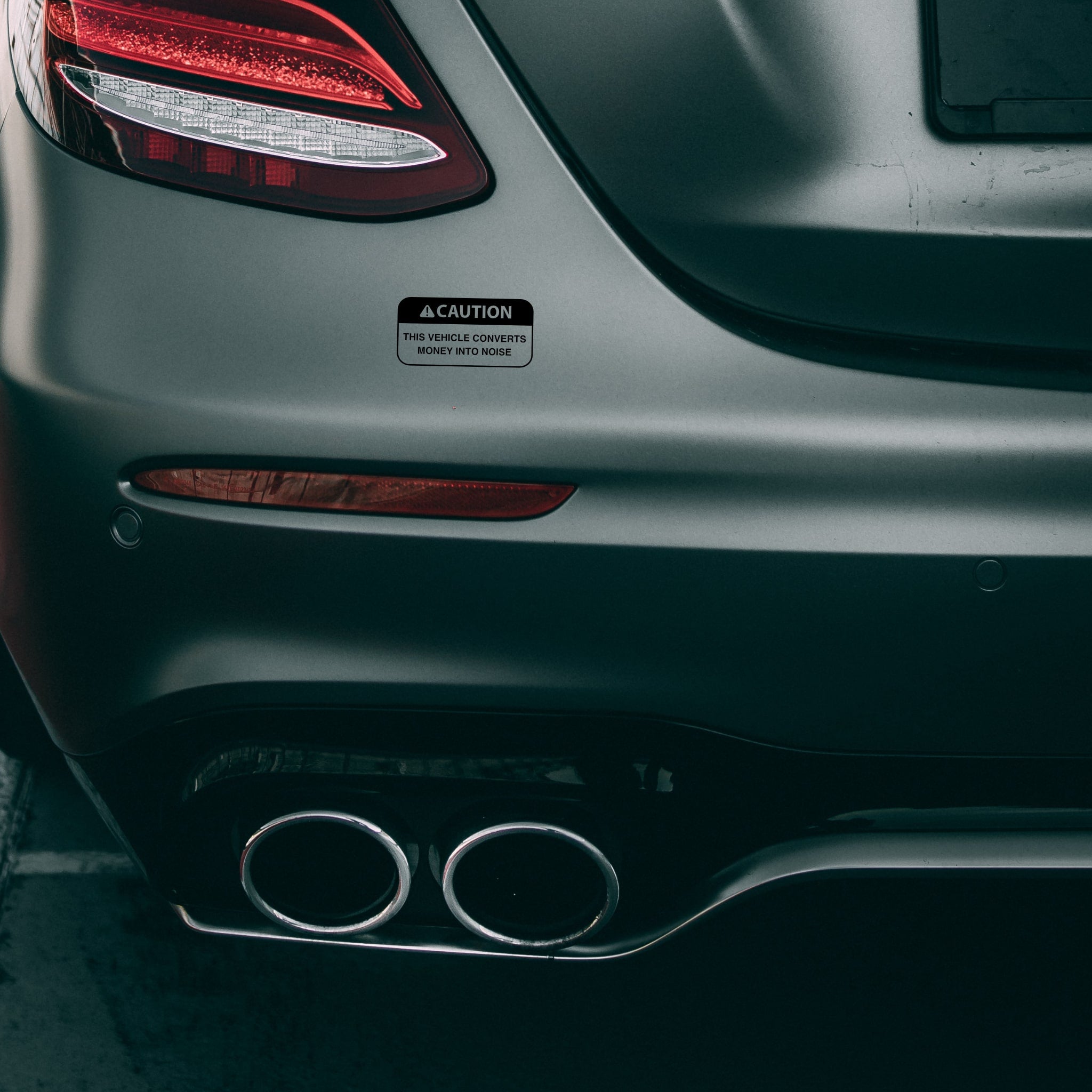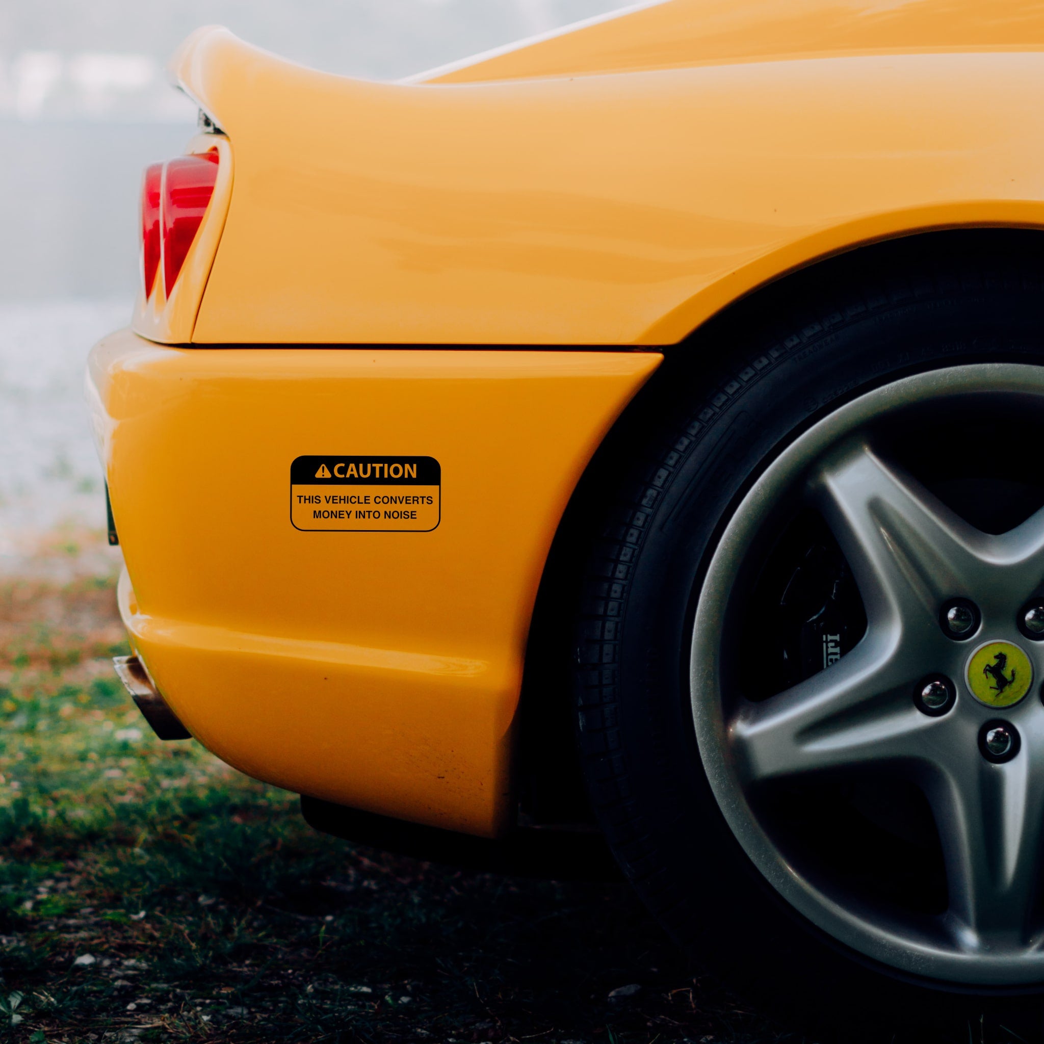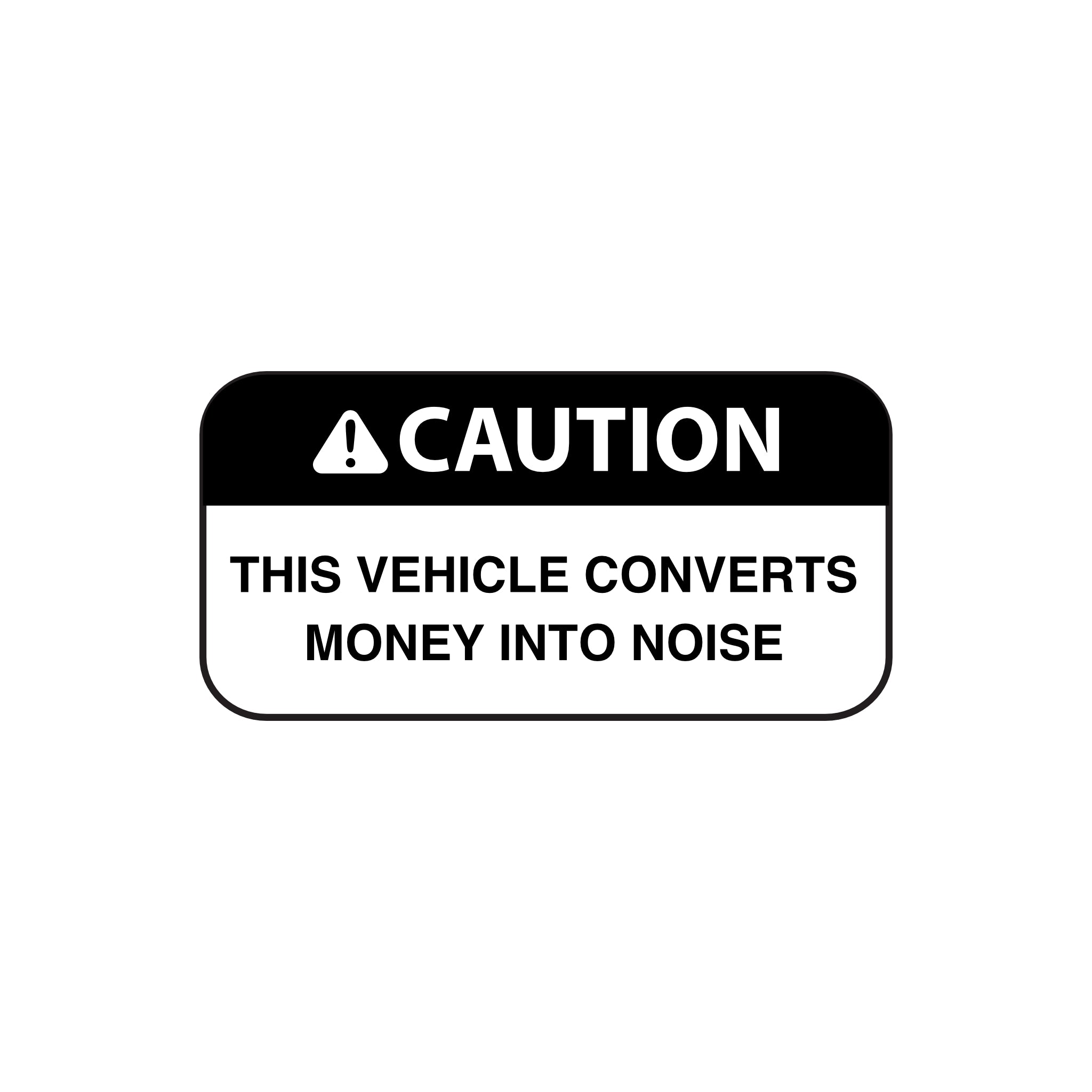 2x "Caution! This vehicle converts money into noise" Motorsport sticker/decal