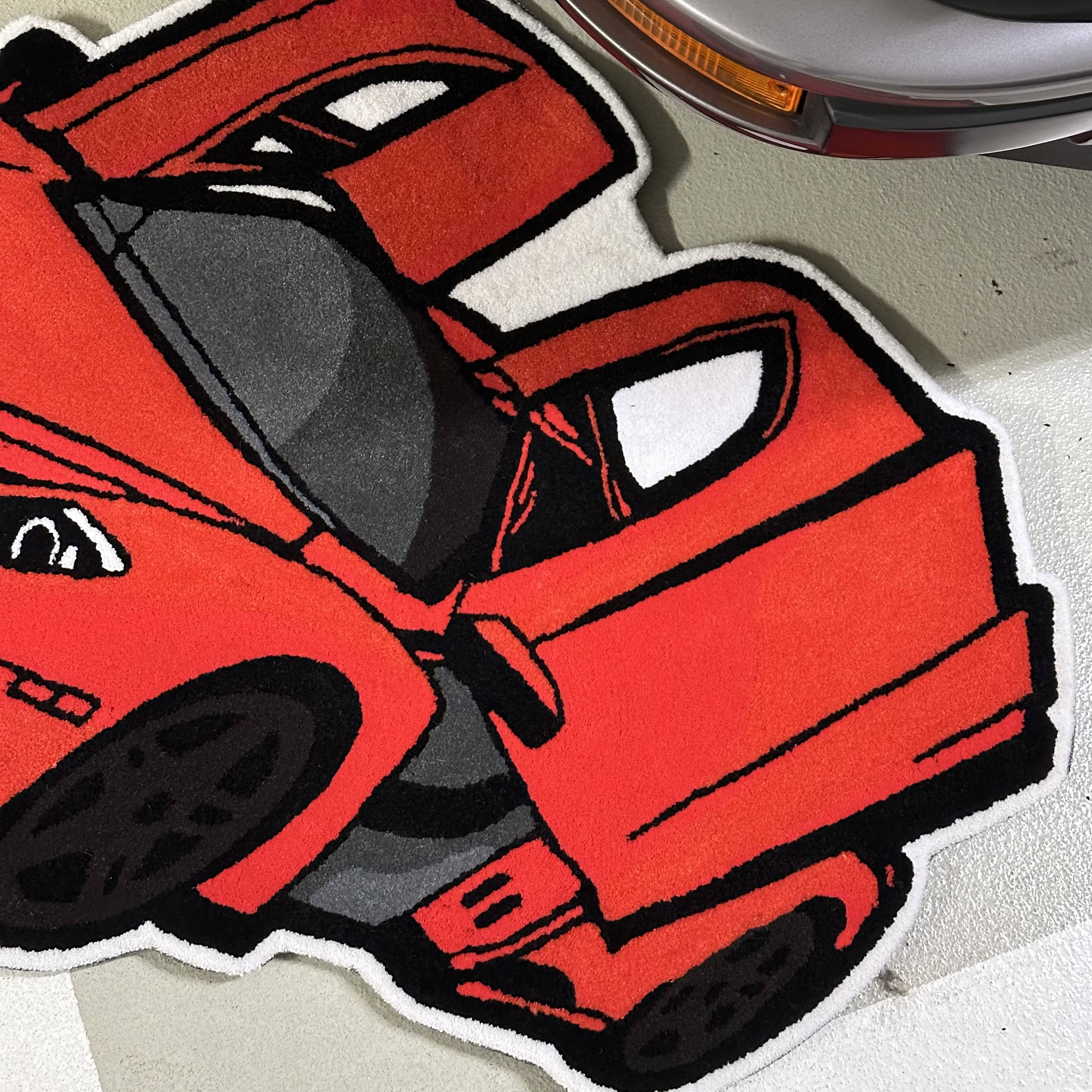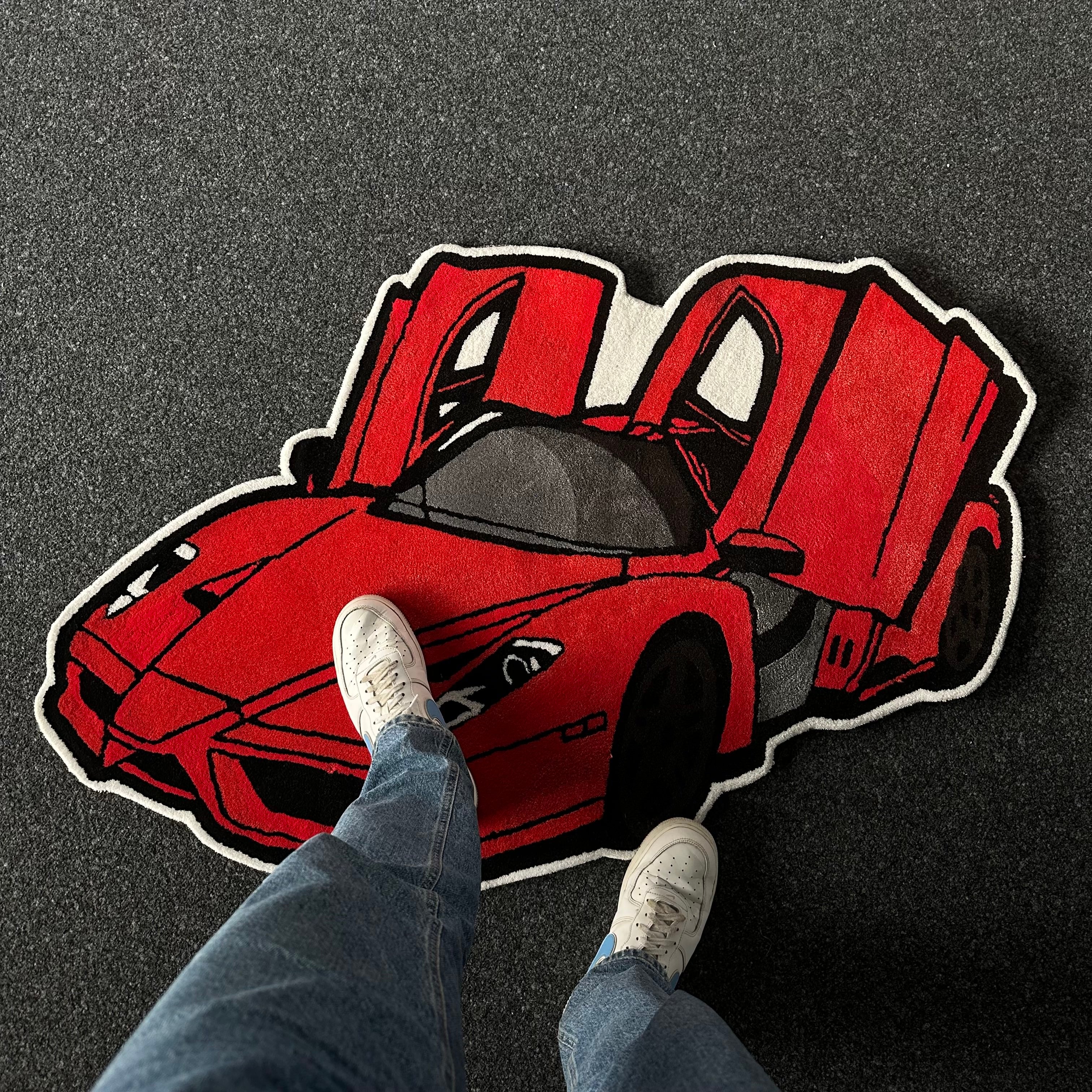 Handmade sportscar rug for true petrol heads. This multi purpose indoor CAR-PET can be used for your home, garage or simply as a piece of art on your wall.