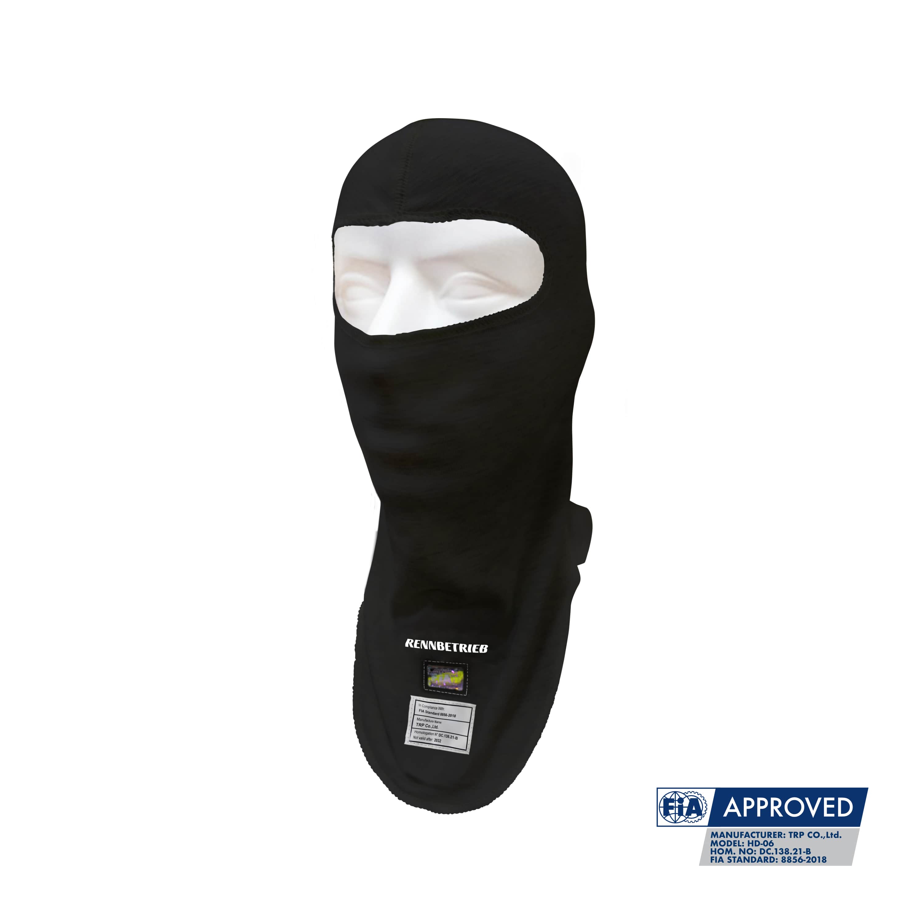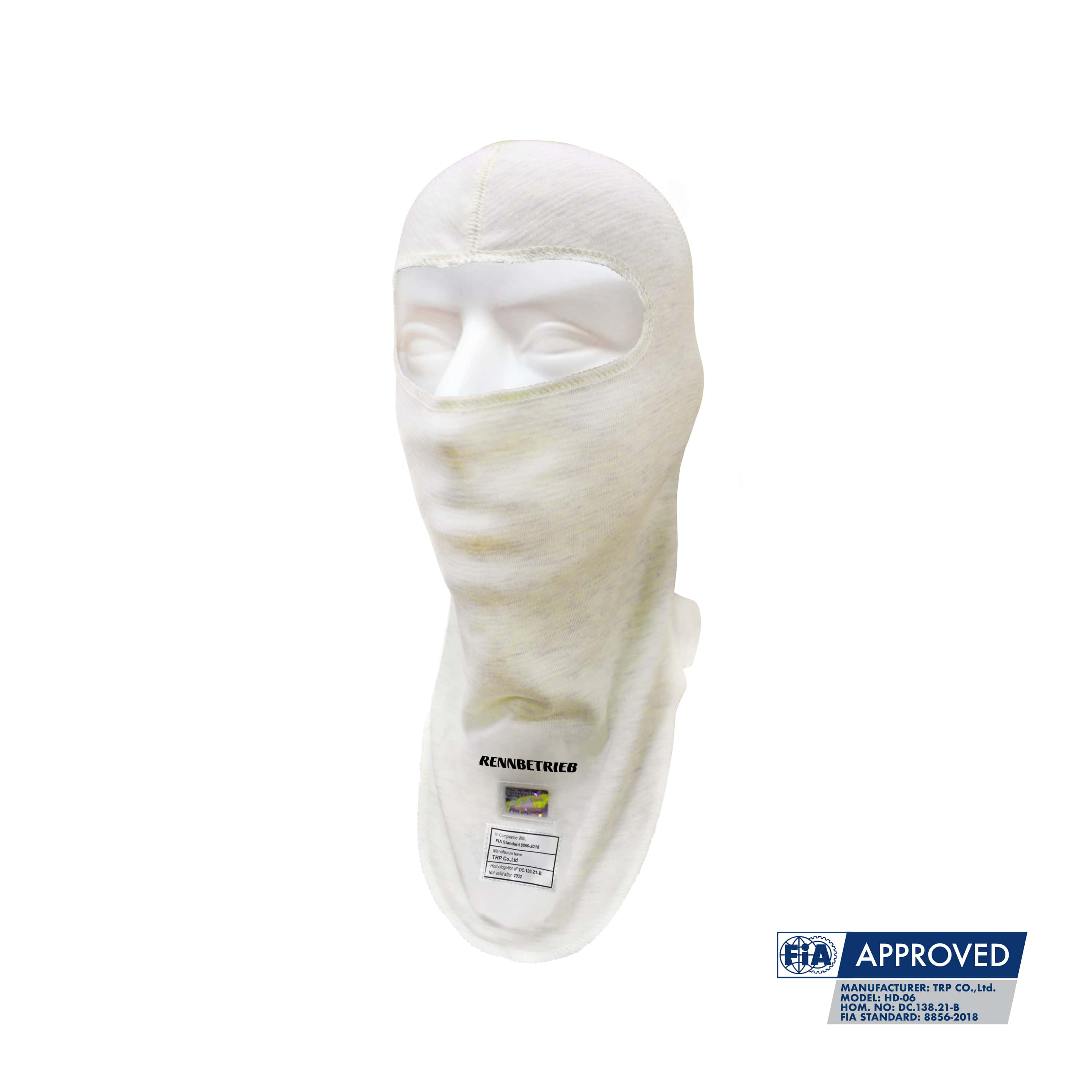 The FIA certified RENNBETRIEB HD-06 Balaclava is made to provide maximum protection and comfort for racers. 100% made out of fire-retardant Nomex®, this balaclava meets the highest safety standards. They feature a lightweight and breathable construction that ensures optimal ventilation and moisture management. This balaclava is suitable for all types of motorsport events where FIA-homologated safety-apparel is mandatory.