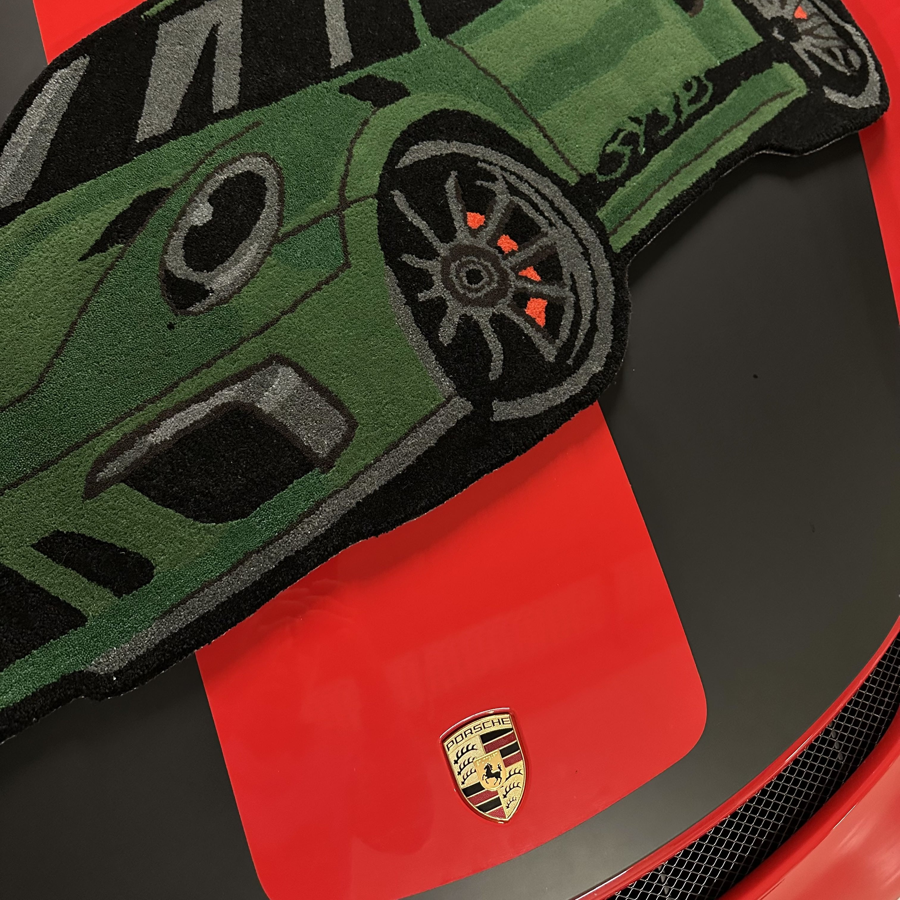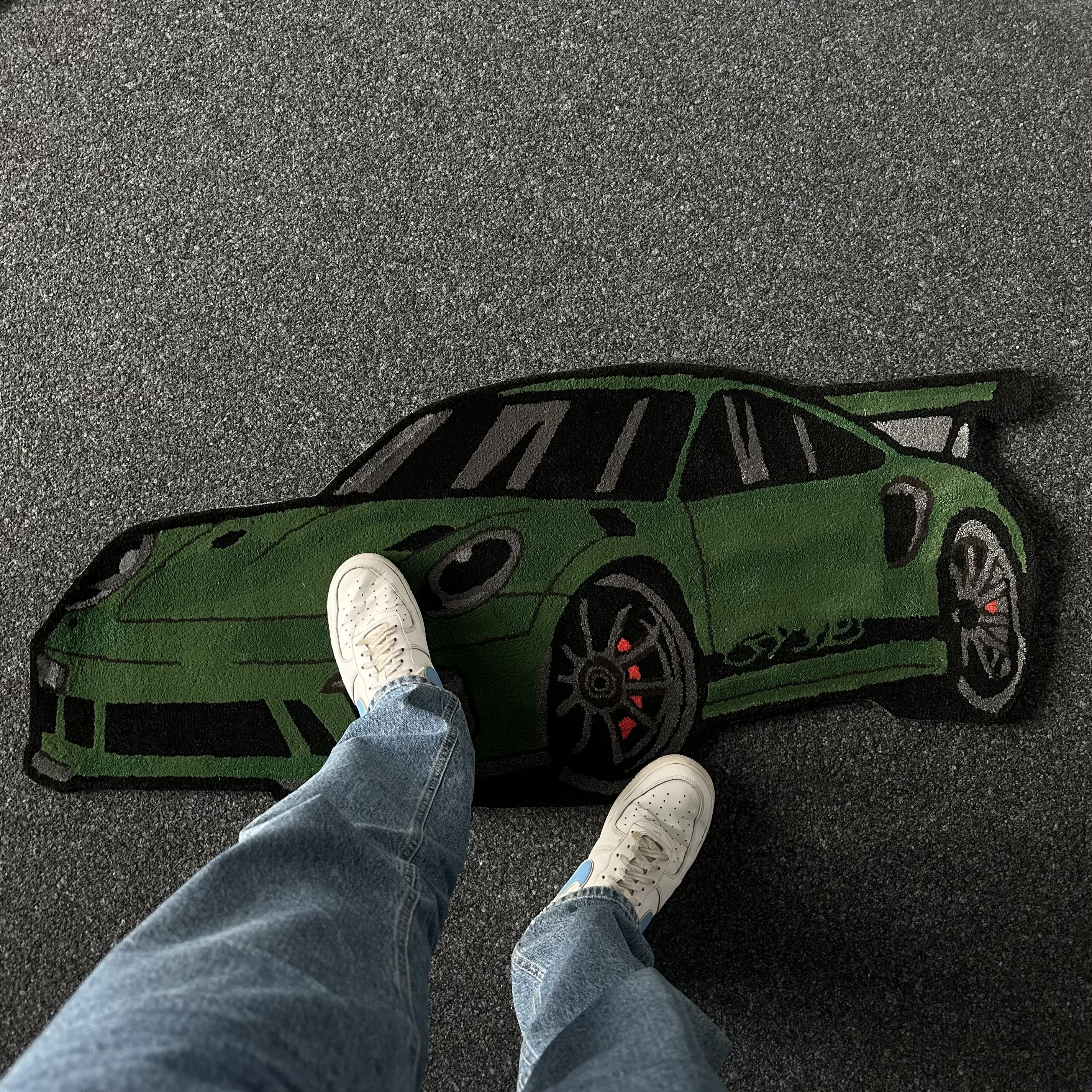 Tappeto per auto sportive fatto a mano per veri appassionati di motori. Questo tappeto multiuso per interni può essere utilizzato per la casa, all'interno del garage o semplicemente come pezzo d'arte sulla parete.